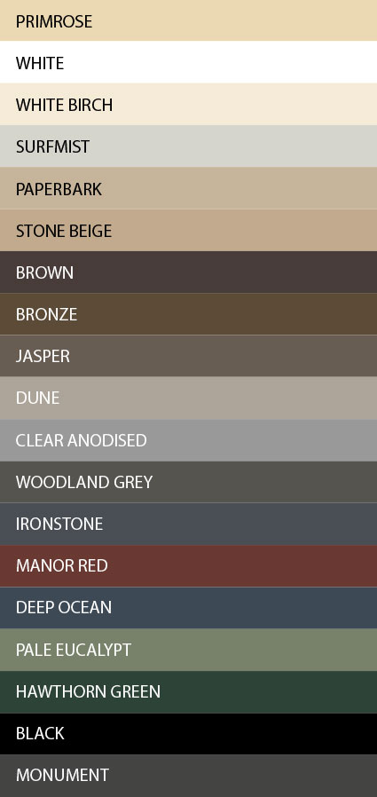 7 mm Diamond aluminium door frame and grilles available in a selection of 18 colours: